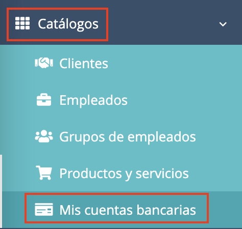 Lo primero que se requiere es tener la cuenta o cuentas registradas en la sección Catálogos – Mis cuentas bancarias: