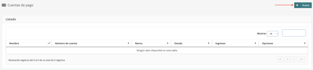Para agregar una cuenta presiona en el botón “Nueva“: